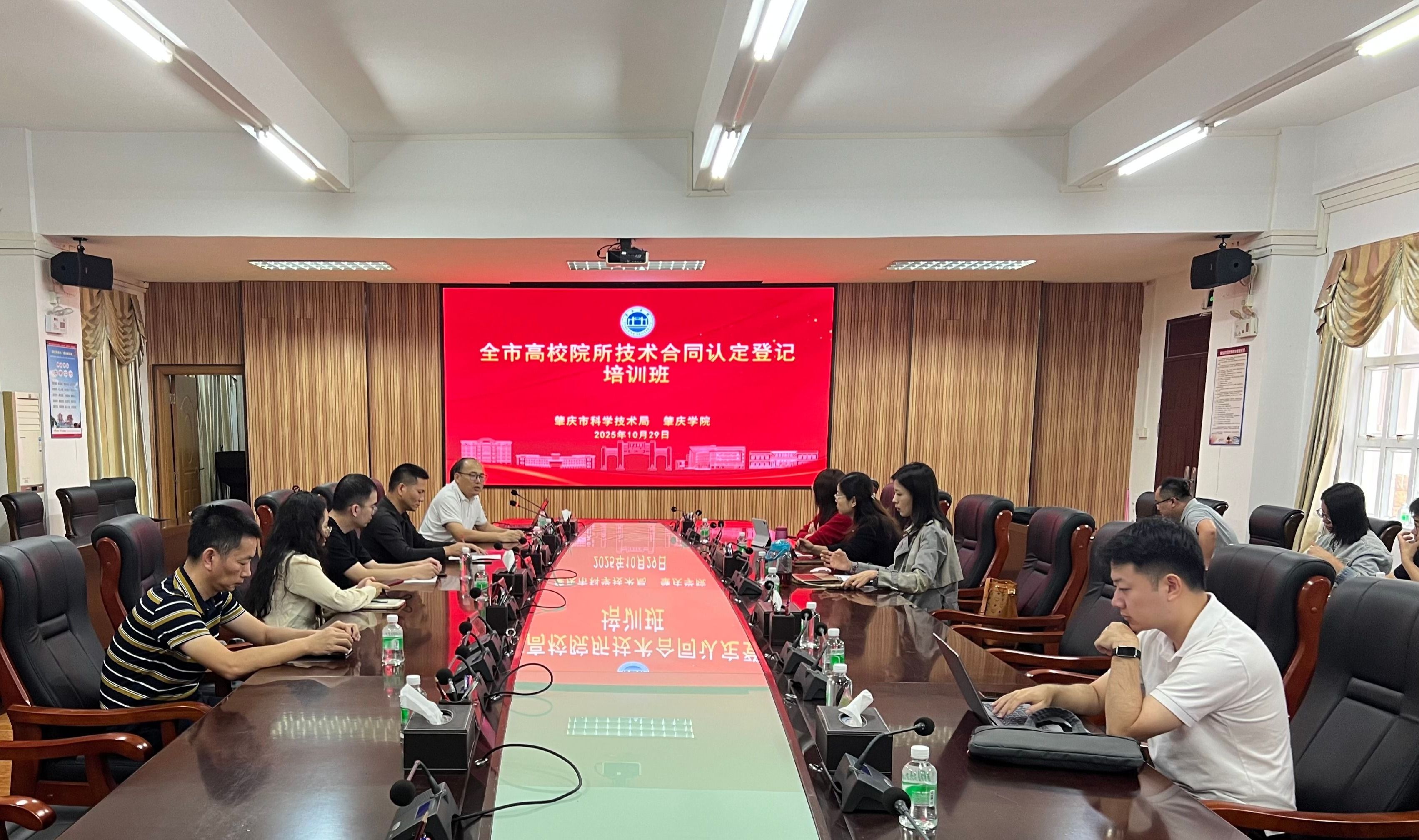 近日,全市高校院所技术合同认定登记培训班在肇庆学院临峰厅顺利举行。本次培训由肇庆市科学技术局主办、肇庆学院承办,旨在规范技术合同认定登记流程,提升高校科研管理水平,促进科研成果转化应用。