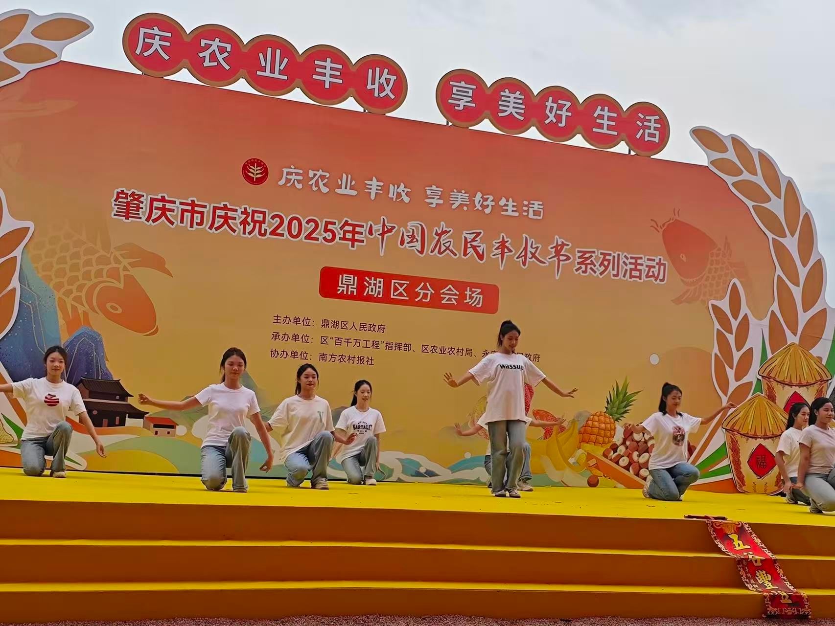 近日,肇庆市庆祝2025年“中国农民丰收节”系列活动鼎湖区分会场在永安镇五福村热闹启幕。作为“双百行动”牵头高校,肇庆学院积极响应号召,组织学子携原创舞蹈节目《青春有你》登台献艺,以青春活力为丰收盛会注入高校力量。