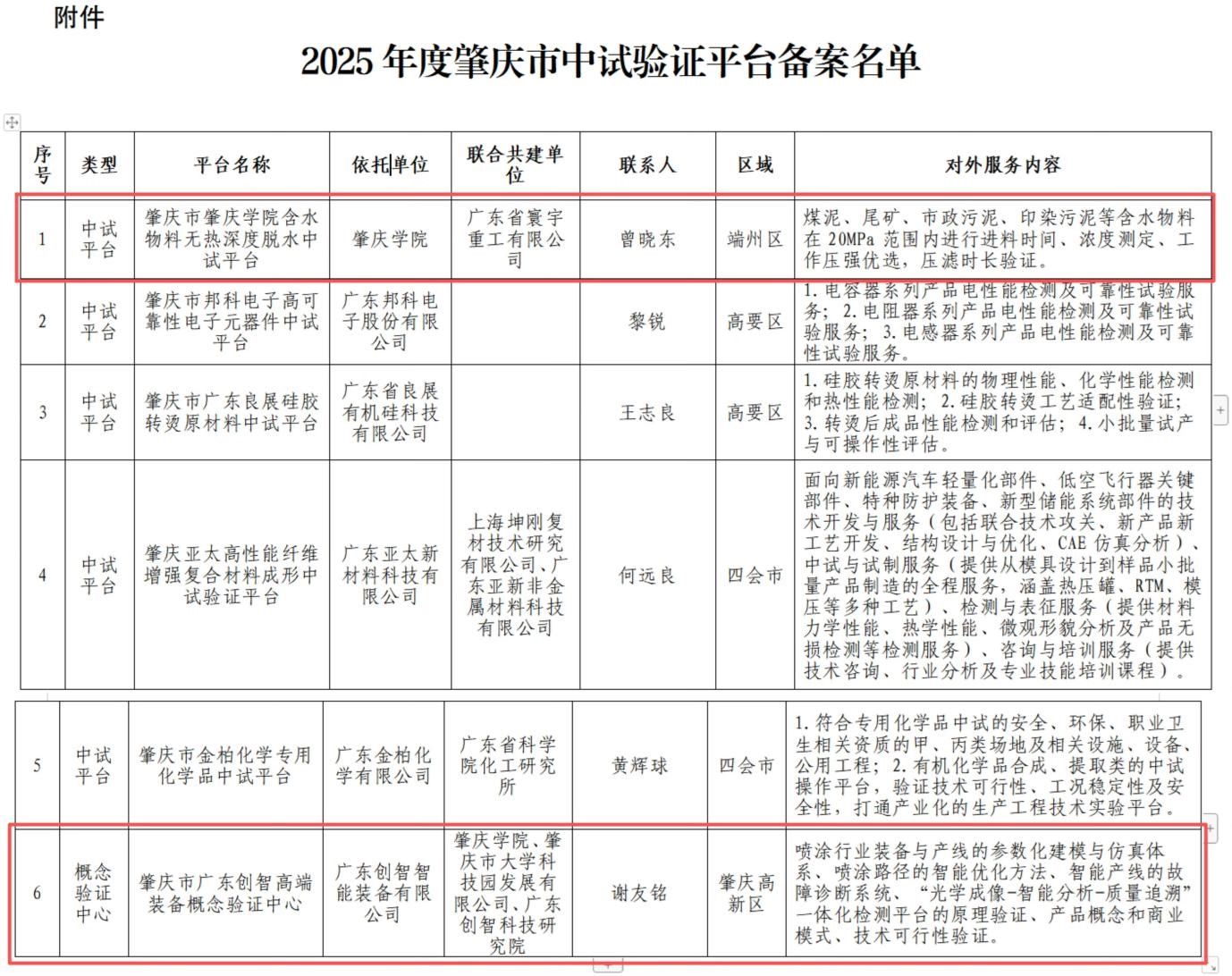 本网讯 近日,肇庆市科学技术局、肇庆市发展和改革局联合发布《关于公布肇庆市中试验证平台备案的通知》,公布了2025年度肇庆市中试验证平台备案名单。全市共有5家中试平台和1家概念验证中心通过备案,其中,我校1个中试平台和1个概念验证中心成功获批市级备案。